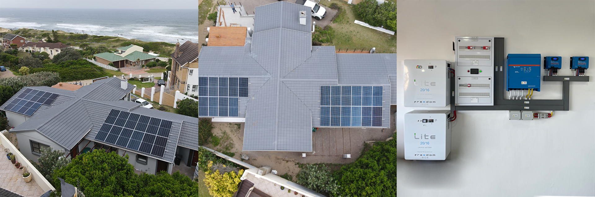 This customer relocated from Gauteng and permanently moved into their holiday home in Port Alfred. As part of a total revamp, they decided to equip their home with a PV system to give them energy security in the event of load shedding. The existing loads were split up into essential and non-essential groups of which the latter only benefits from solar energy if both excess solar energy and the grid are available. The essential loads have the benefit of battery backup should a utility outage occur for whatever reason.